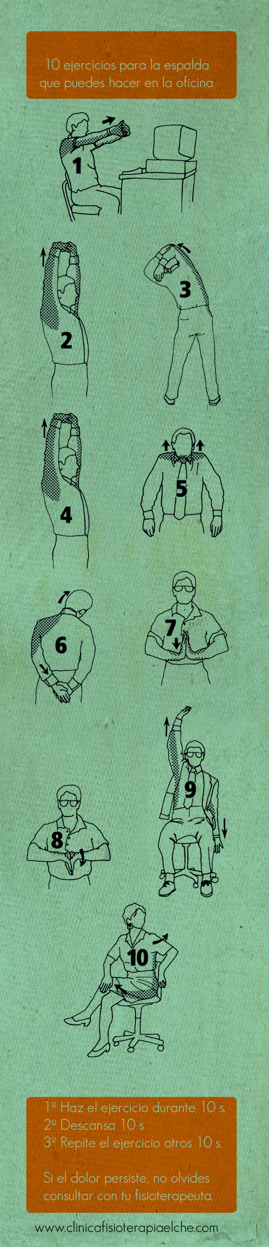 Realiza estos estiramientos 1, 2 o 3 veces al día. Descárgate y la tabla y puedes guardártela en el móvil y realizar los ejercicios donde quieras.
